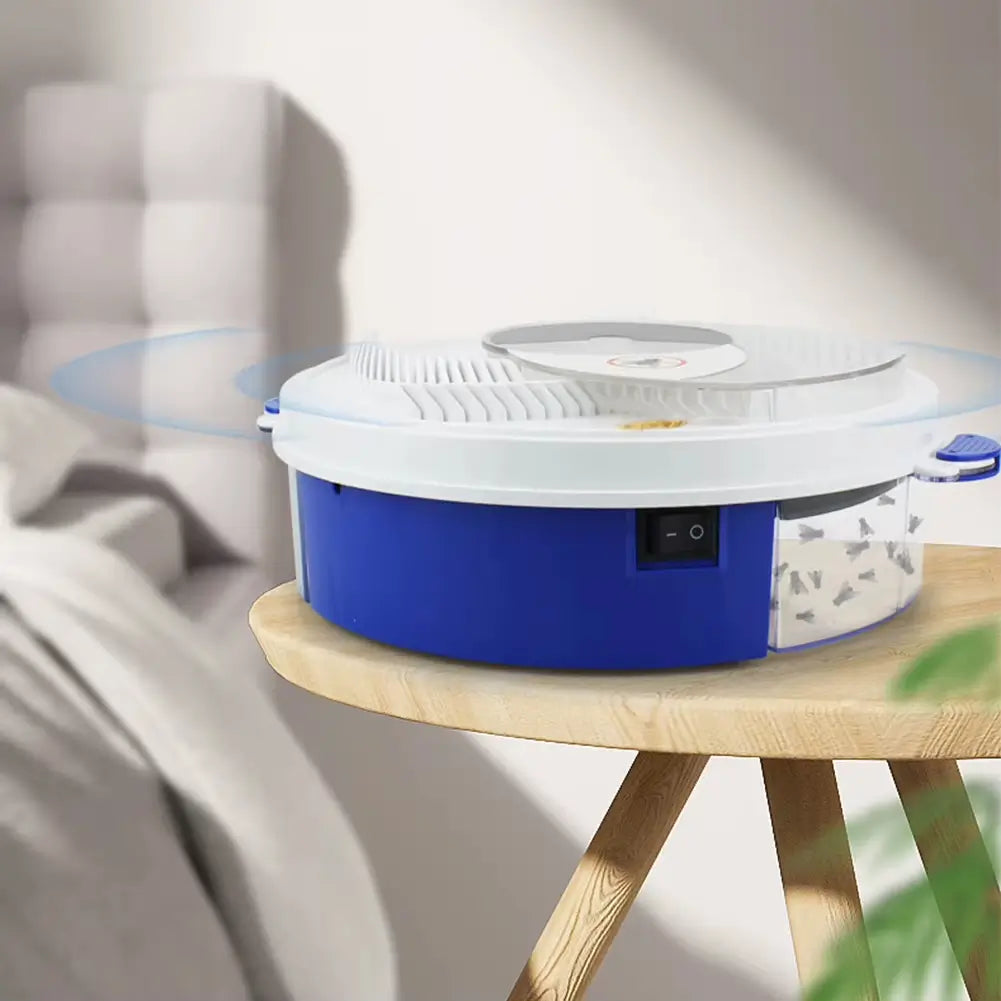 Este dispositivo utiliza cebo, rotación 360° y un diseño🌀de 5 curvas que guía naturalmente a las moscas hacia su bandeja de captura.