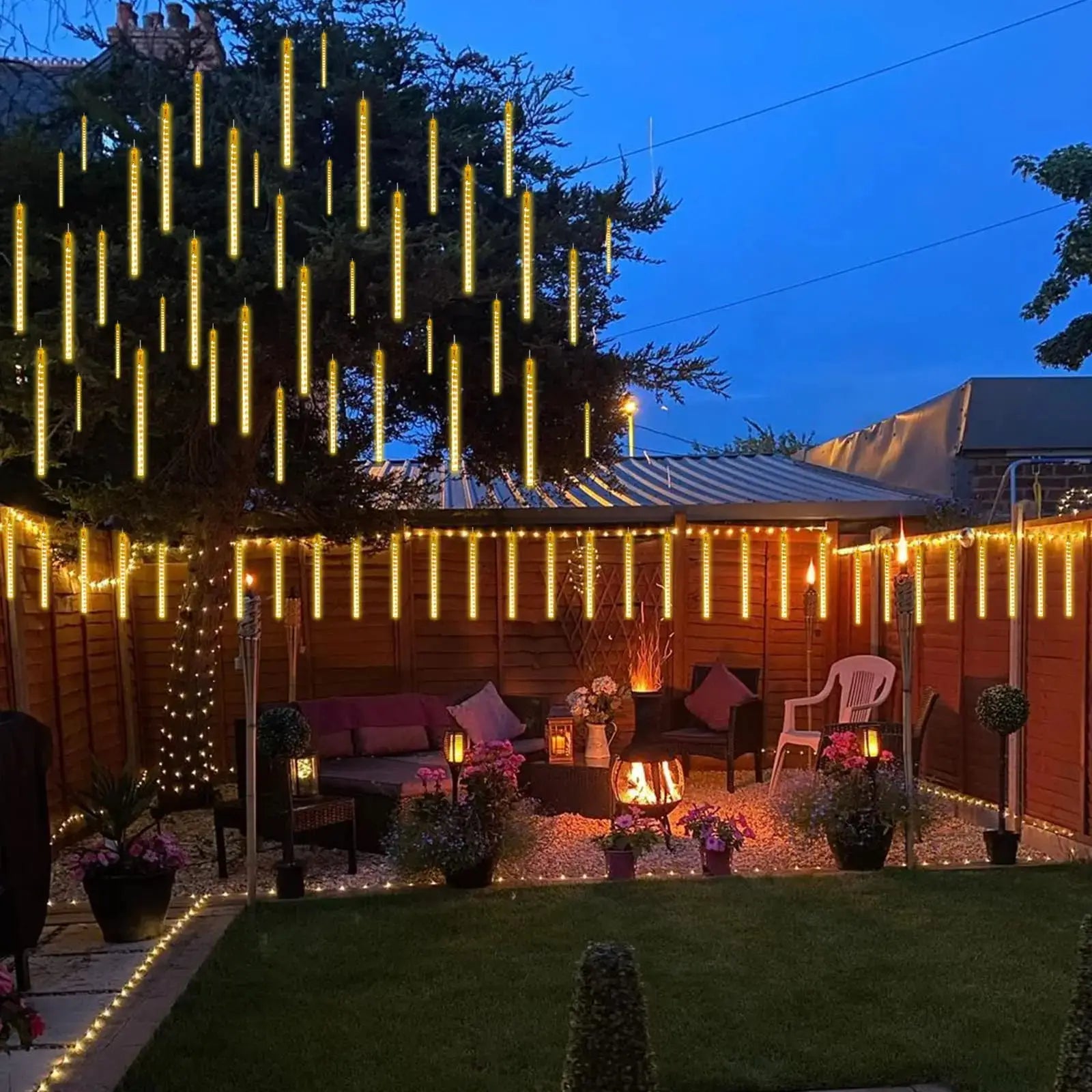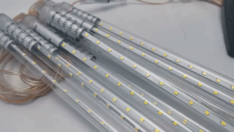 Nuestra luz de lluvia de meteoritos cuenta con 8 tubos y 24 luces LED cálidas por tubo, luz de persecución que pueden crear la impresionante ilusión de estrella fugaz.