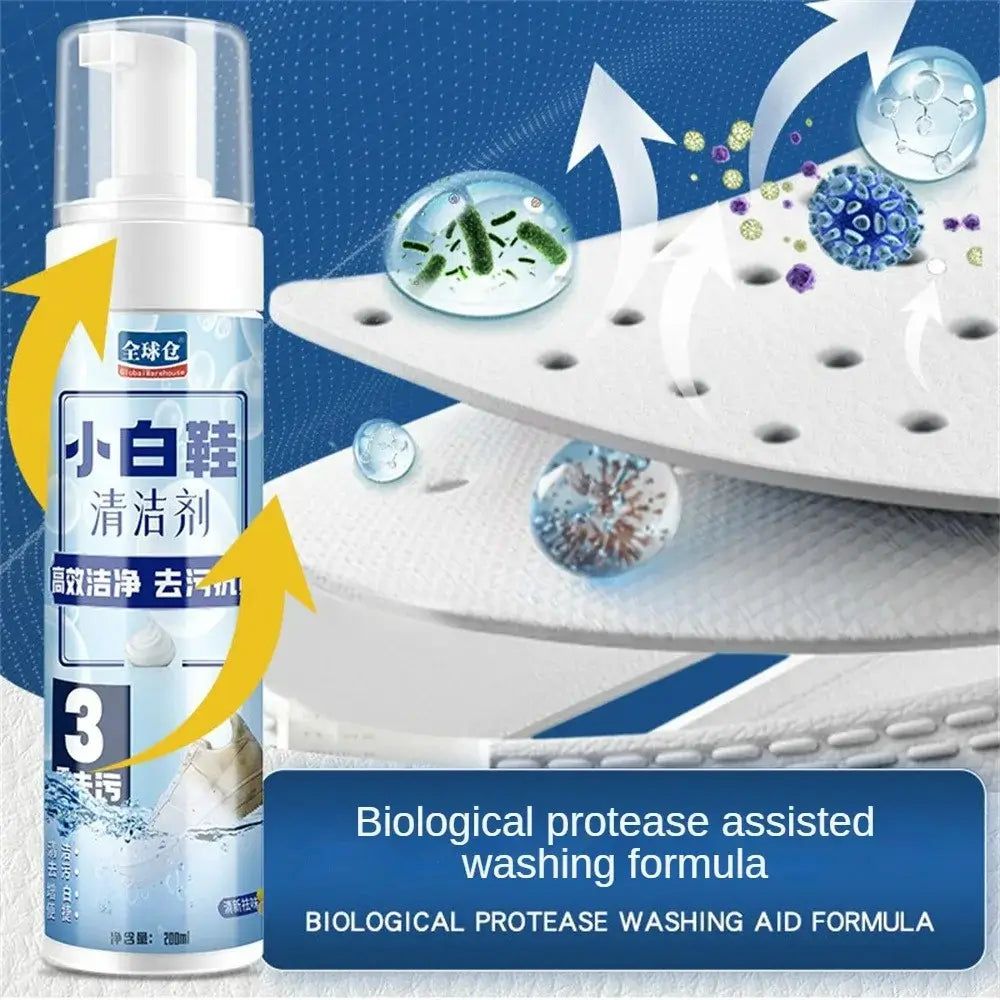 Nuestra espuma limpiadora está diseñada para facilitar la limpieza de tus zapatos, sea cual sea el material. Desde zapatos de cuero hasta zapatillas deportivas, en solo segundos podrás ver cómo la suciedad, el polvo y las manchas desaparecen. Su fórmula 2 en 1 no solo limpia, sino que también protege y restaura el brillo original, dándoles un acabado impecable sin necesidad de frotar durante horas.